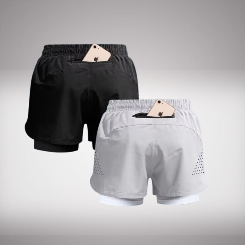 2 pcs QuickGear Men’s Double Layer Shorts black&grey
